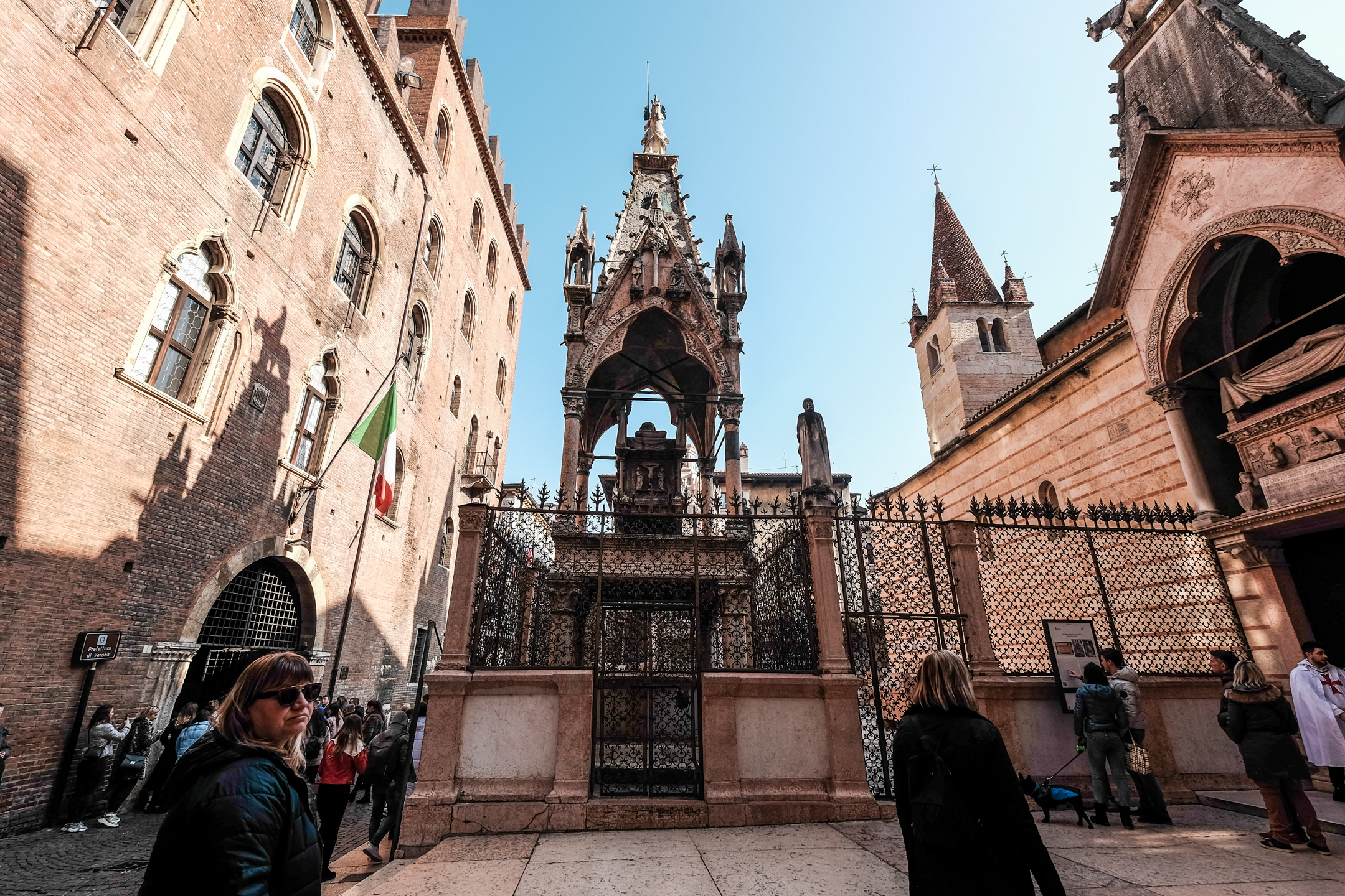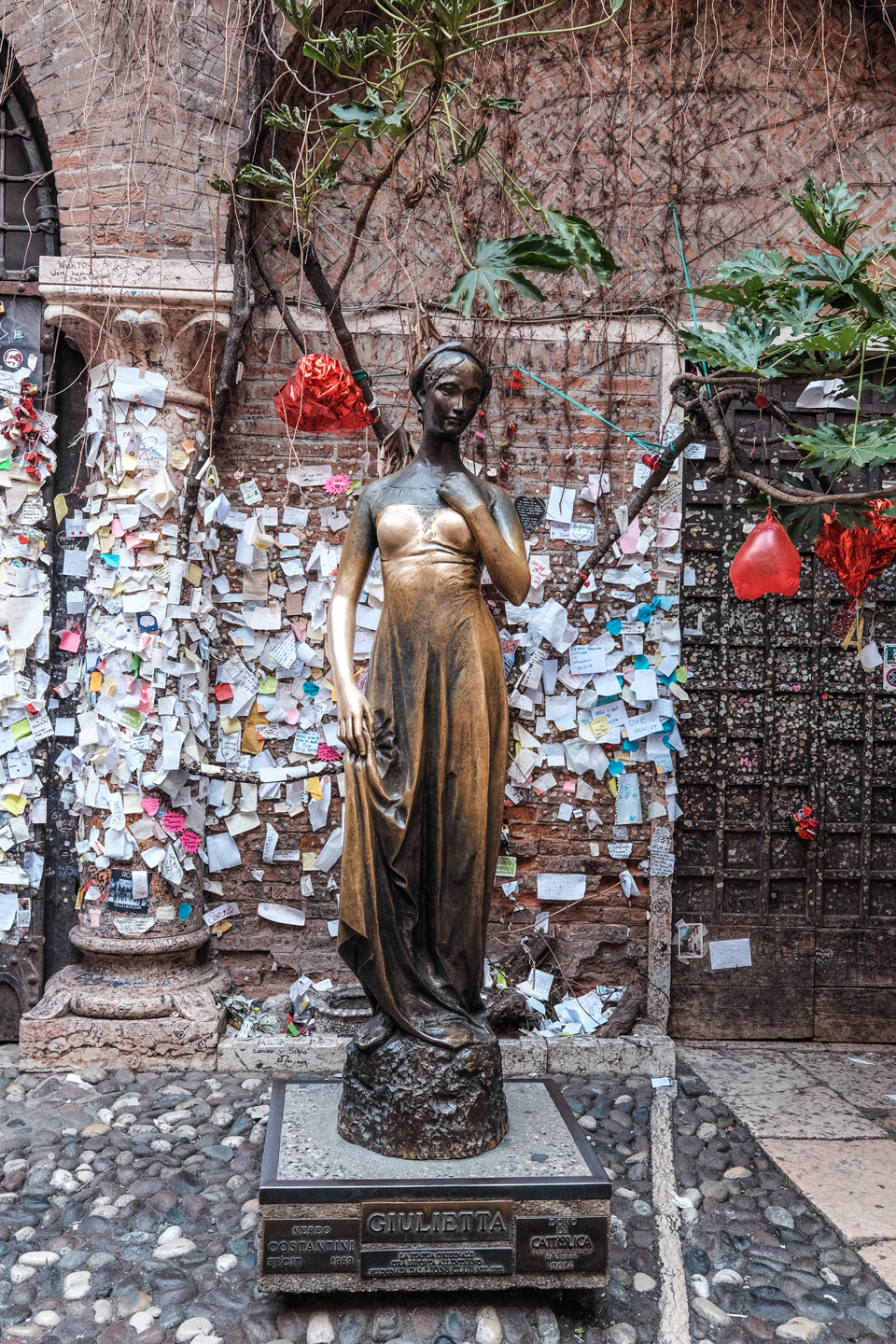 А вот и статуя Джульетты, это относительно новая копия, старая с протертой грудью хранится в музее.